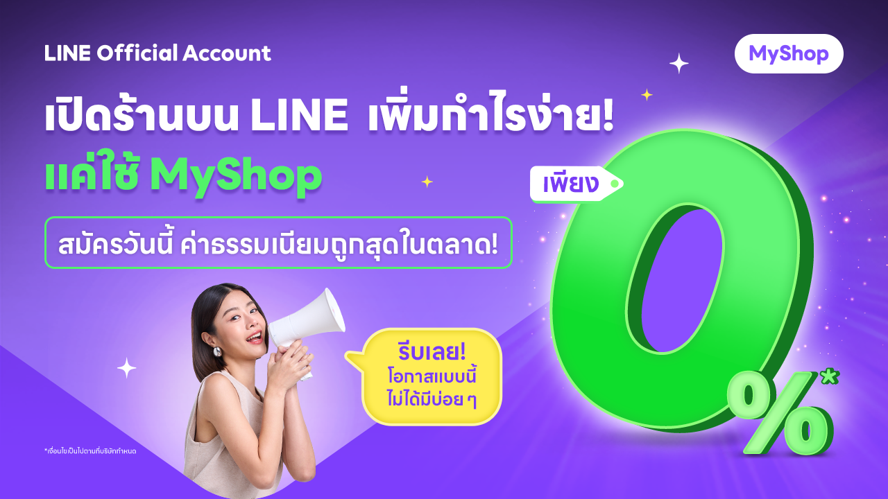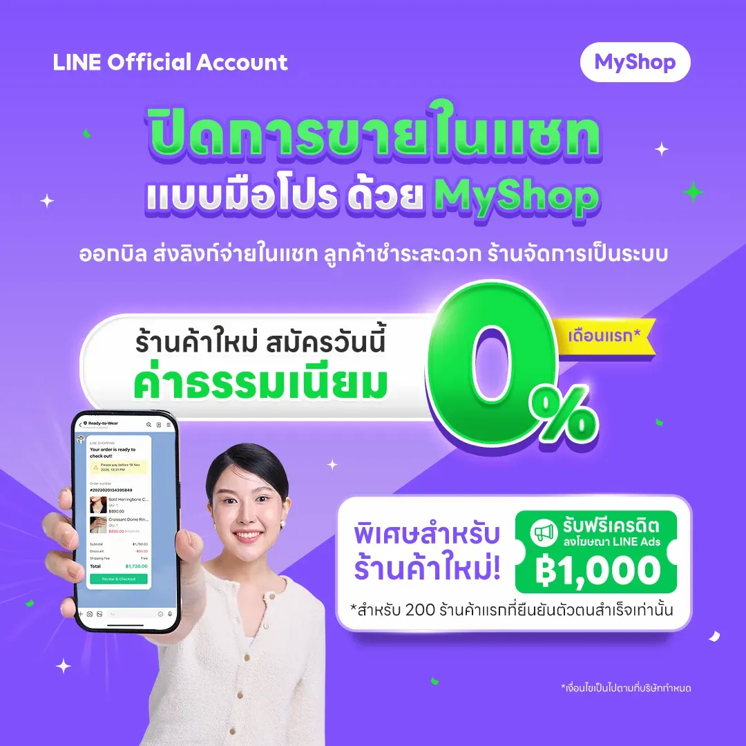 สมัคร MyShop ตอนนี้ ฟรี! ค่าธรรมเนียมชำระเงิน 0%